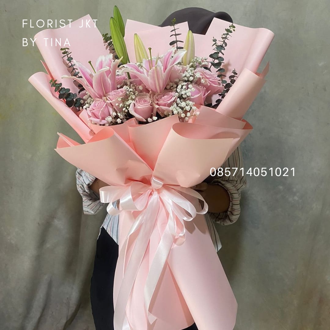 - isi 20 mawar,lily,eucalyptus